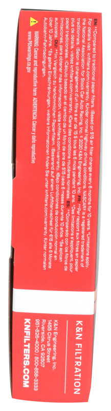 Sportovní filtr K&N má až o 50 % vyšší propustnost vzduchu než běžné papírové filtry. Zlepšený přísun vzduchu vede ke zvýšení výkonu a točivého momentu, přičemž filtr zároveň poskytuje lepší ochranu motoru před nečistotami.