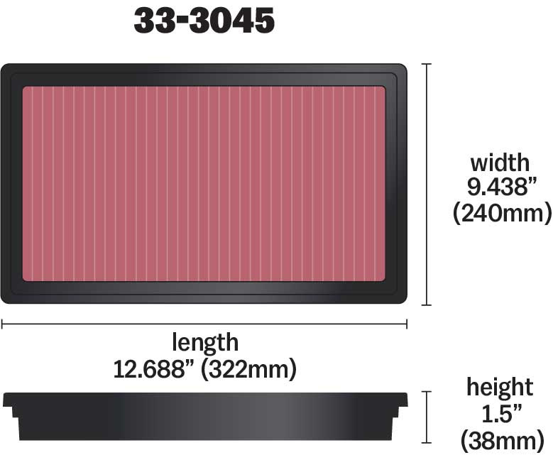 ROZMĚRY A PARAMETRY VLOŽKY FILTRU K&N 33-3045