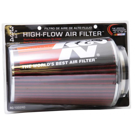 K&N univerzální kulatý zkosený filtr se vstupem 102 mm a výškou 225 mm, kovový vrchlík