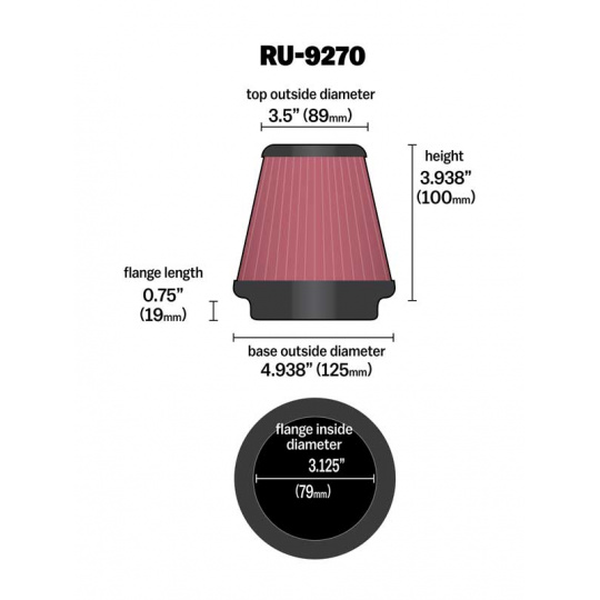 ZÁKLADNÍ ROZMĚRY A PARAMETRY UNIVERZÁLNÍHO FILTRU K&N RU-9270