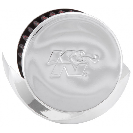 K&N univerzální odvětrávací filtr s vnějším průměrem 76 mm a výškou 64 mm, průměr vstupu 35 mm, délka vstupní příruby 16 mm, materiál Netkaná syntetická textilie, vrchlík kovový vrchlík