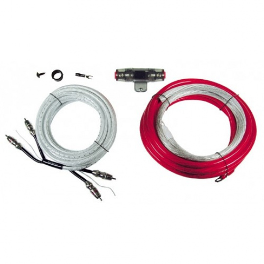 Sada obsahuje: 5 metrů stříbřeného napájecího kabelu průřezu 16 qmm, 1 metr mínusového kabelu, pojistkové pouzdro s 80 A pojistkou a 3 x stíněný 5 metrový signálový kabel vyšší třídy.