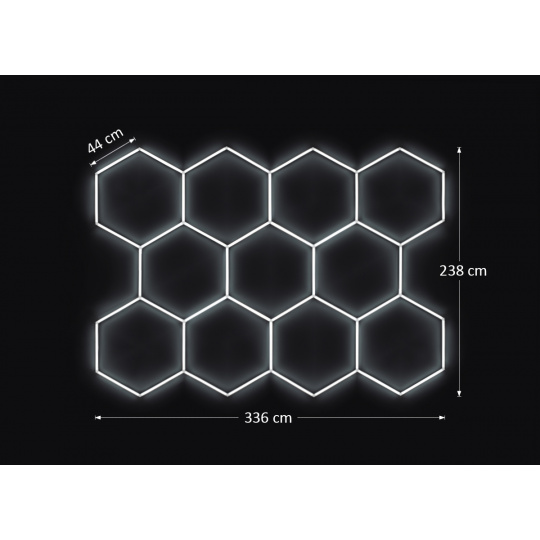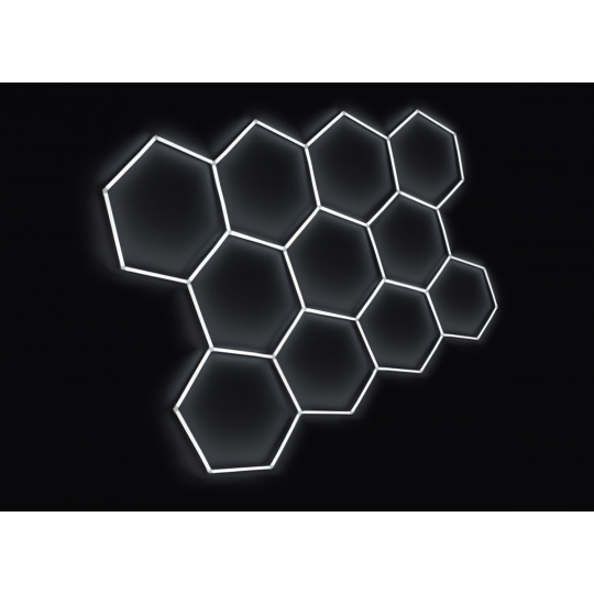 Kompletní LED hexagonové svítidlo bílé 4500 K, rozměr: 11 elementů 336 x 238 cm