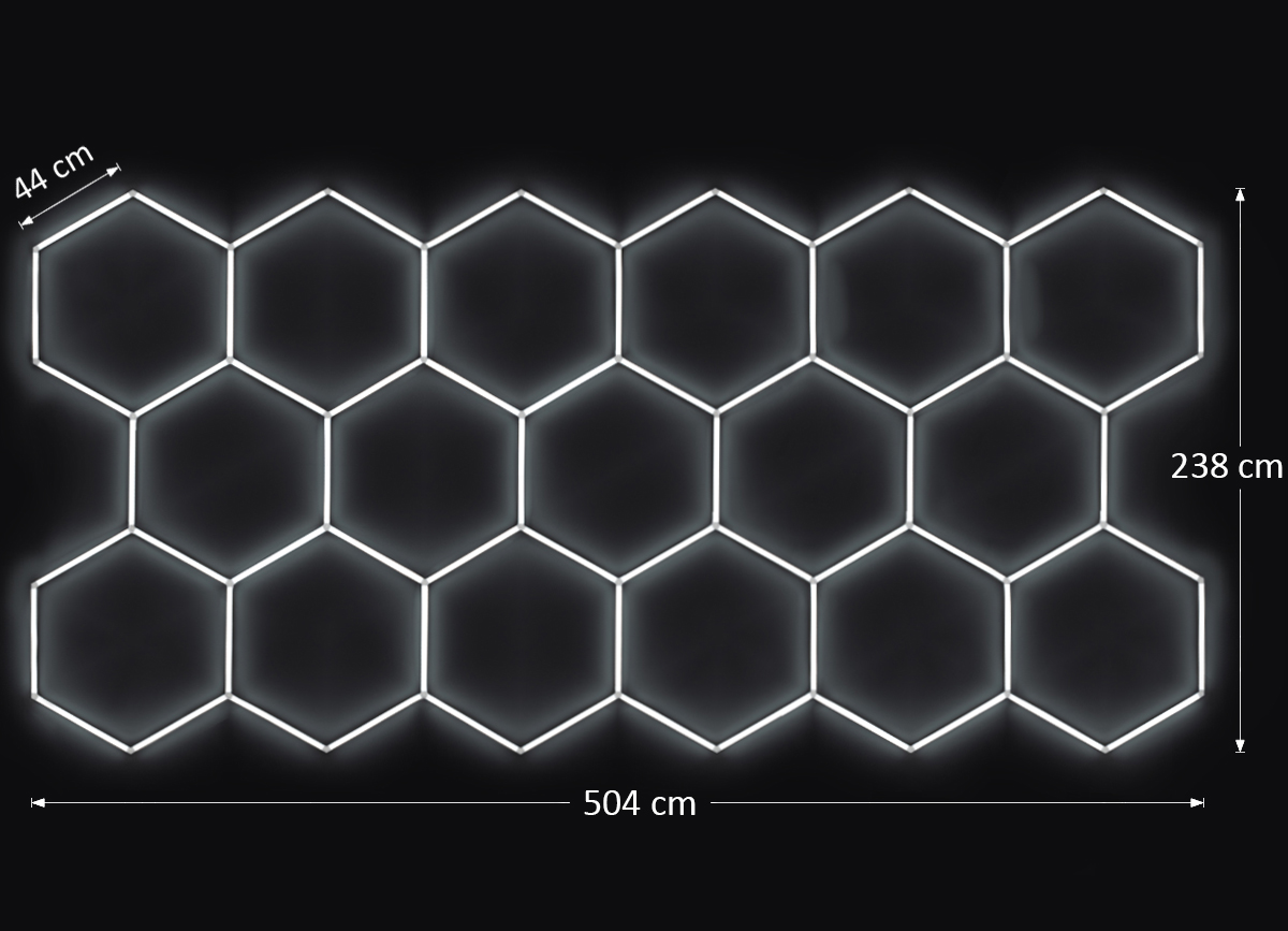 Kompletní LED hexagonové svítidlo bílé 4500 K, rozměr: 17 elementů 504 x 238 cm