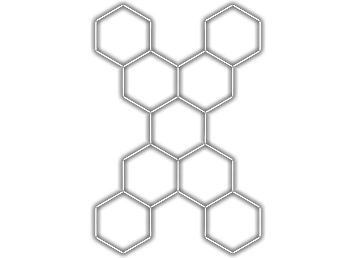 Kompletní LED hexagonové svítidlo bílé 4500 K, rozměr: 9 elementů 246 x 386 cm tvar X
