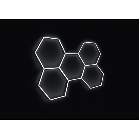 Kompletní LED hexagonové svítidlo bílé 6500 K, rozměr: 5 elementů 238 x 168 cm