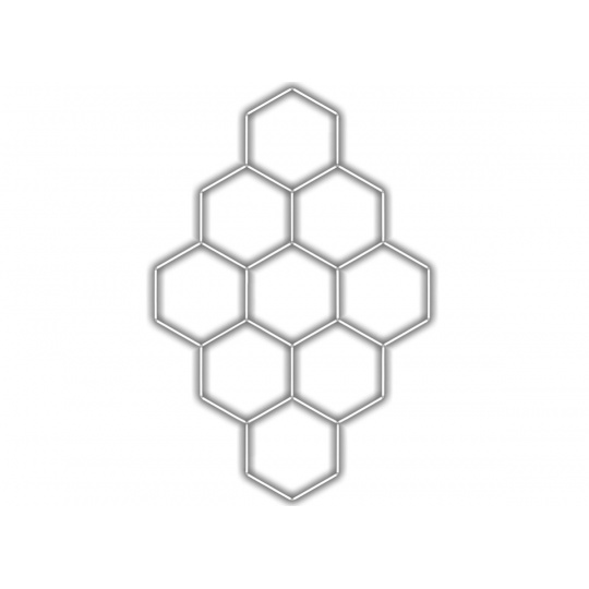 Kompletní LED hexagonové svítidlo bílé 6500 K, rozměr: 9 elementů 246 x 386 cm