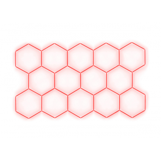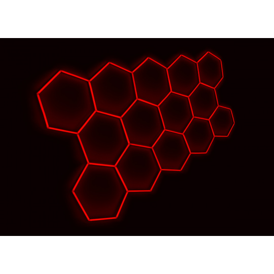 Kompletní LED hexagonové svítidlo červené, rozměr: 14 elementů 420 x 238 cm