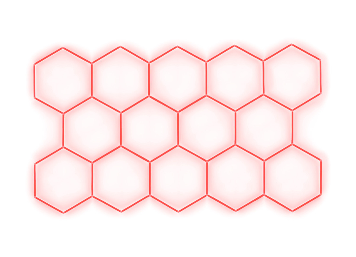 Kompletní LED hexagonové svítidlo červené, rozměr: 14 elementů 420 x 238 cm