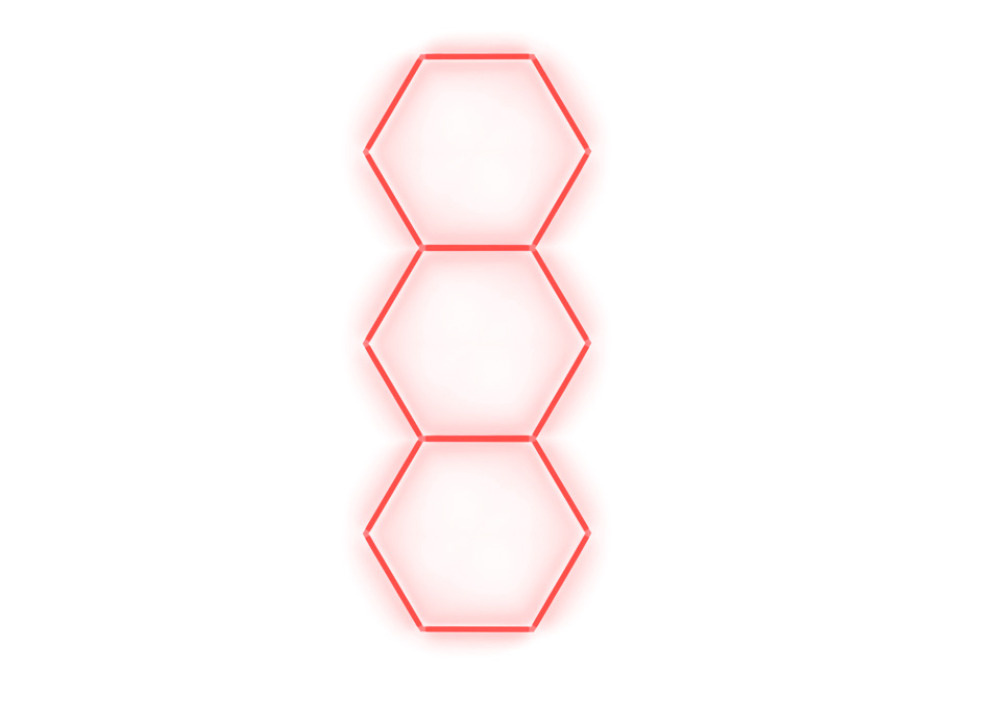 Kompletní LED hexagonové svítidlo červené, rozměr: 3 elementy 97 x 246 cm