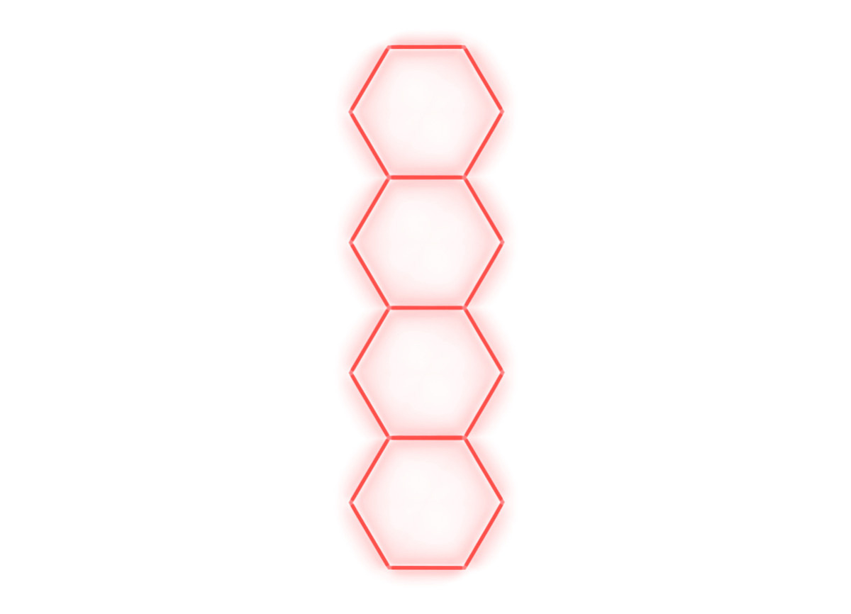 Kompletní LED hexagonové svítidlo červené, rozměr: 4 elementy 97 x 327 cm