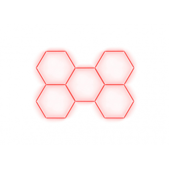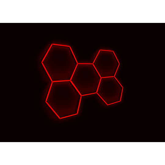 Kompletní LED hexagonové svítidlo červené, rozměr: 5 elementů 238 x 168 cm