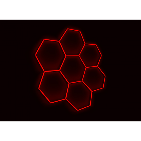 Kompletní LED hexagonové svítidlo červené, rozměr: 7 elementů 238 x 252 cm