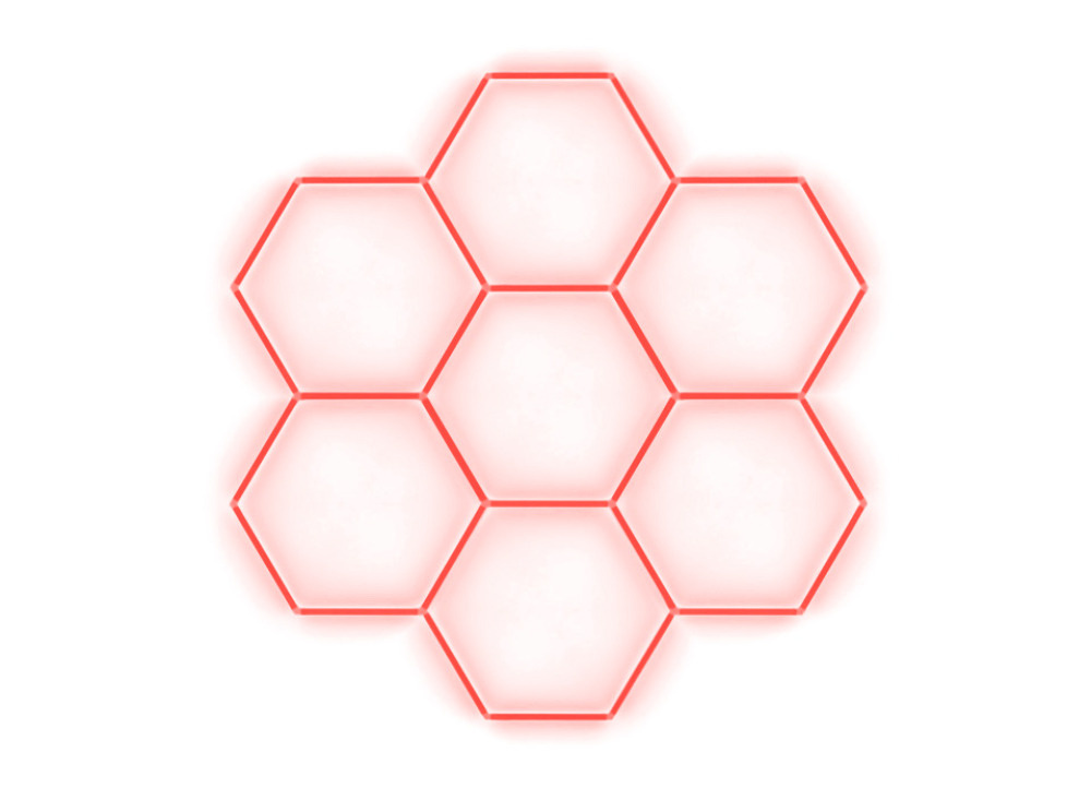 Kompletní LED hexagonové svítidlo červené, rozměr: 7 elementů 238 x 252 cm