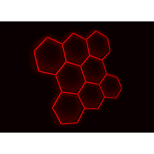 Kompletní LED hexagonové svítidlo červené, rozměr: 8 elementů 252 x 238 cm