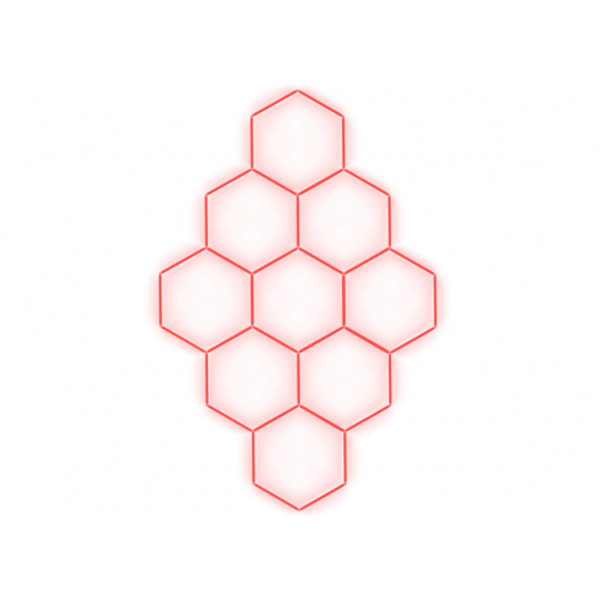 Kompletní LED hexagonové svítidlo červené, rozměr: 9 elementů 246 x 386 cm