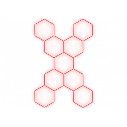 Kompletní LED hexagonové svítidlo červené, rozměr: 9 elementů 246 x 386 cm tvar X