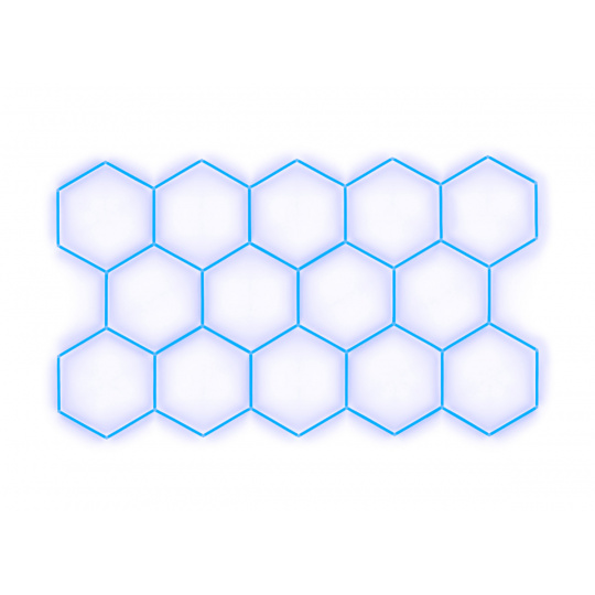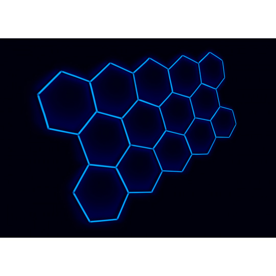 Kompletní LED hexagonové svítidlo modré, rozměr: 14 elementů 420 x 238 cm