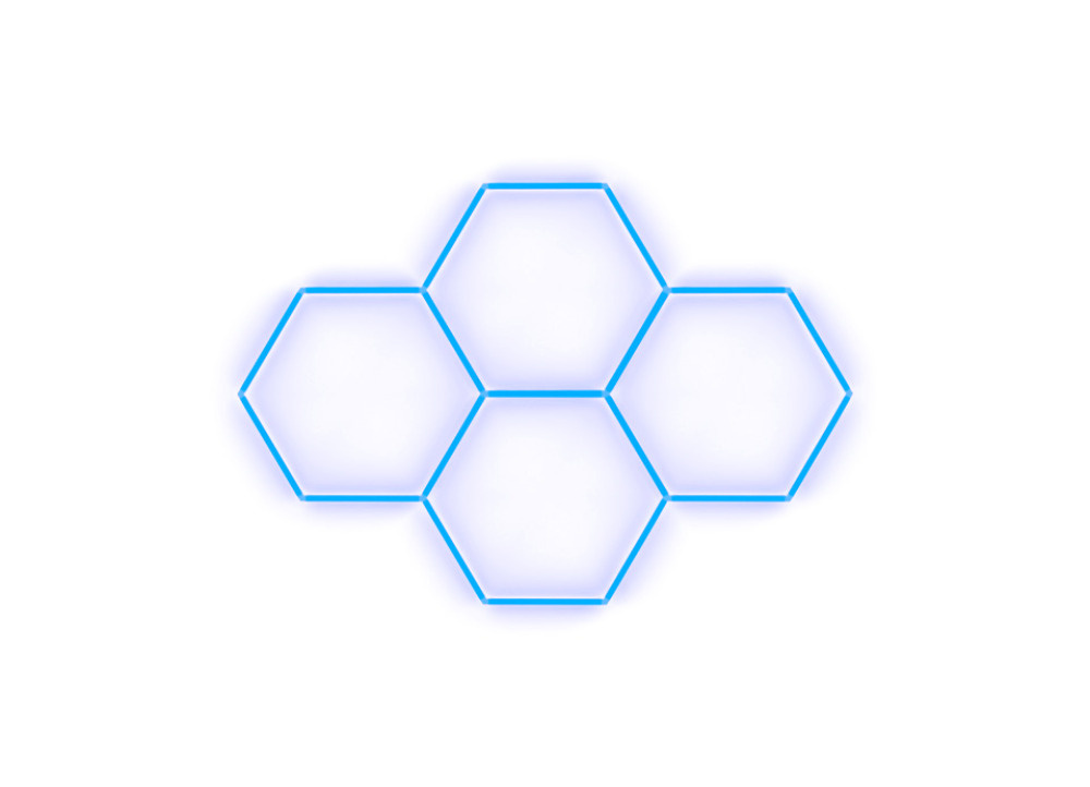 Kompletní LED hexagonové svítidlo modré, rozměr: 4 elementy 241 x 168 cm