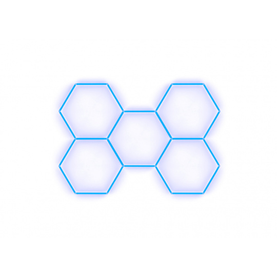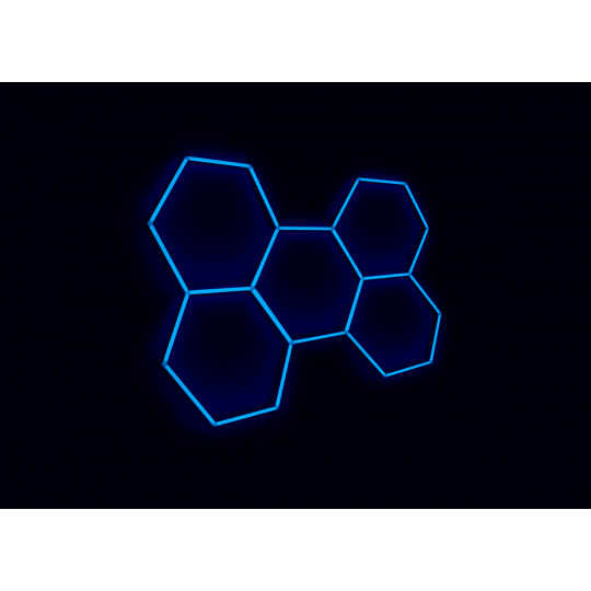 Kompletní LED hexagonové svítidlo modré, rozměr: 5 elementů 238 x 168 cm