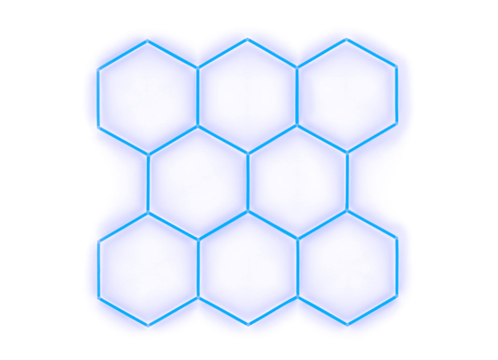 Kompletní LED hexagonové svítidlo modré, rozměr: 8 elementů 252 x 238 cm