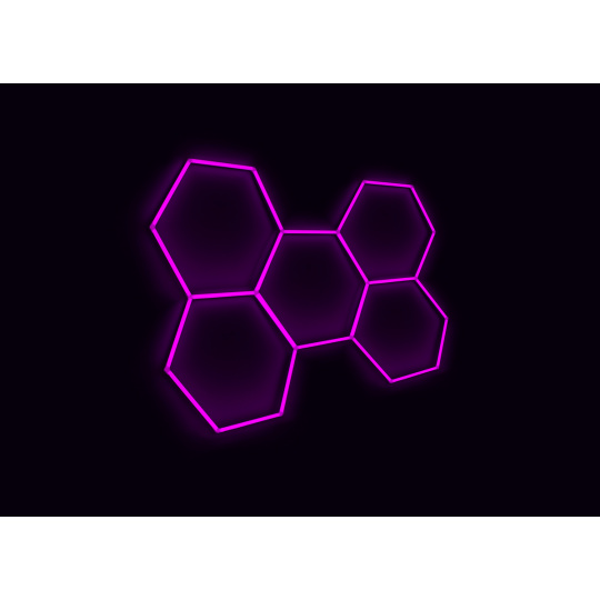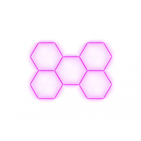 Kompletní LED hexagonové svítidlo růžové, rozměr: 5 elementů 238 x 168 cm