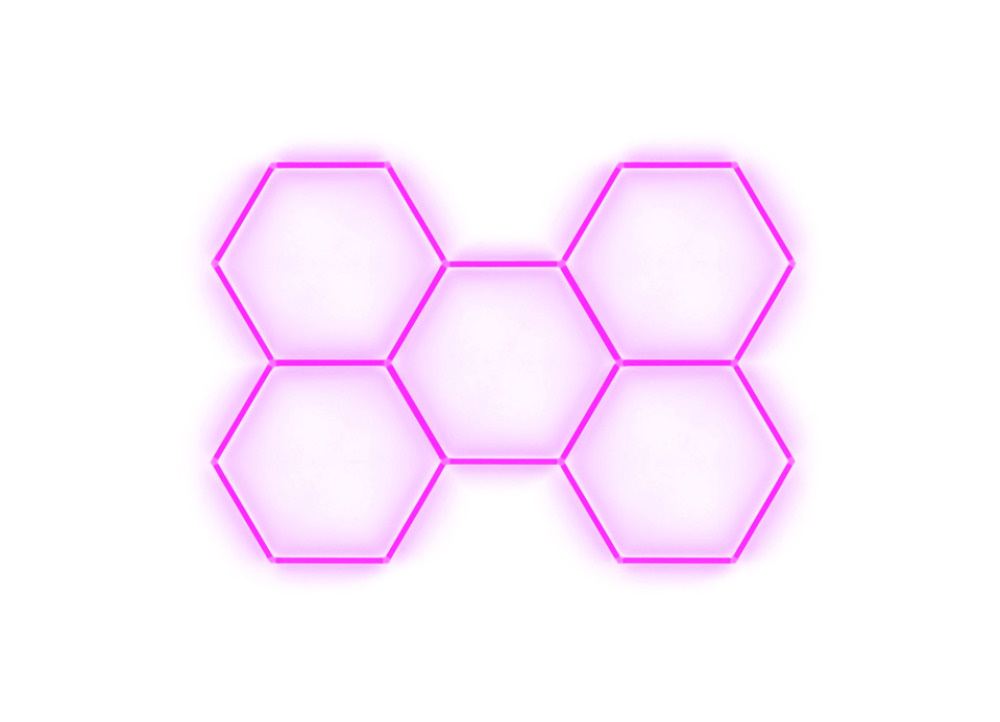 Kompletní LED hexagonové svítidlo růžové, rozměr: 5 elementů 238 x 168 cm
