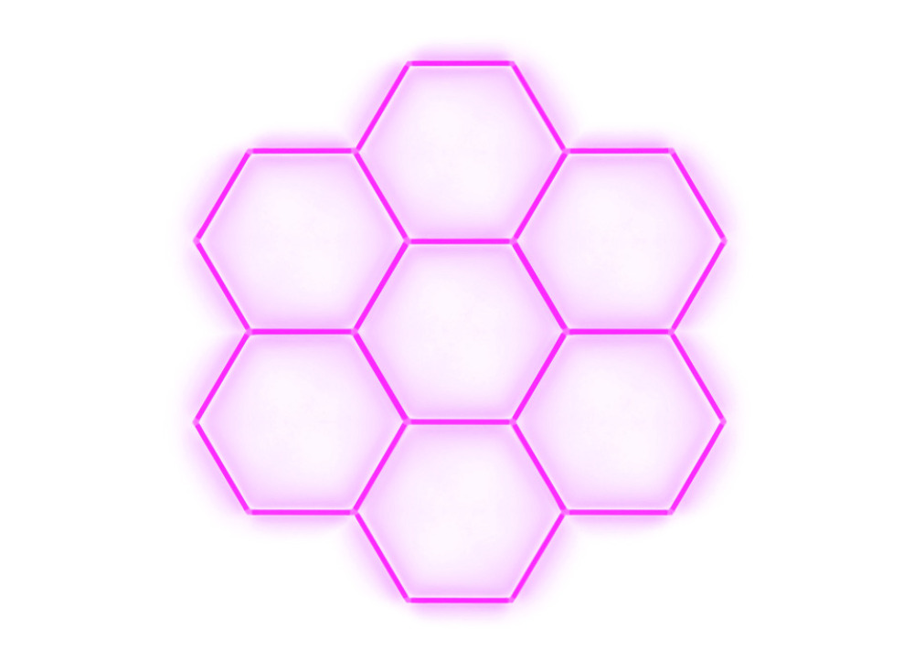 Kompletní LED hexagonové svítidlo růžové, rozměr: 7 elementů 238 x 252 cm
