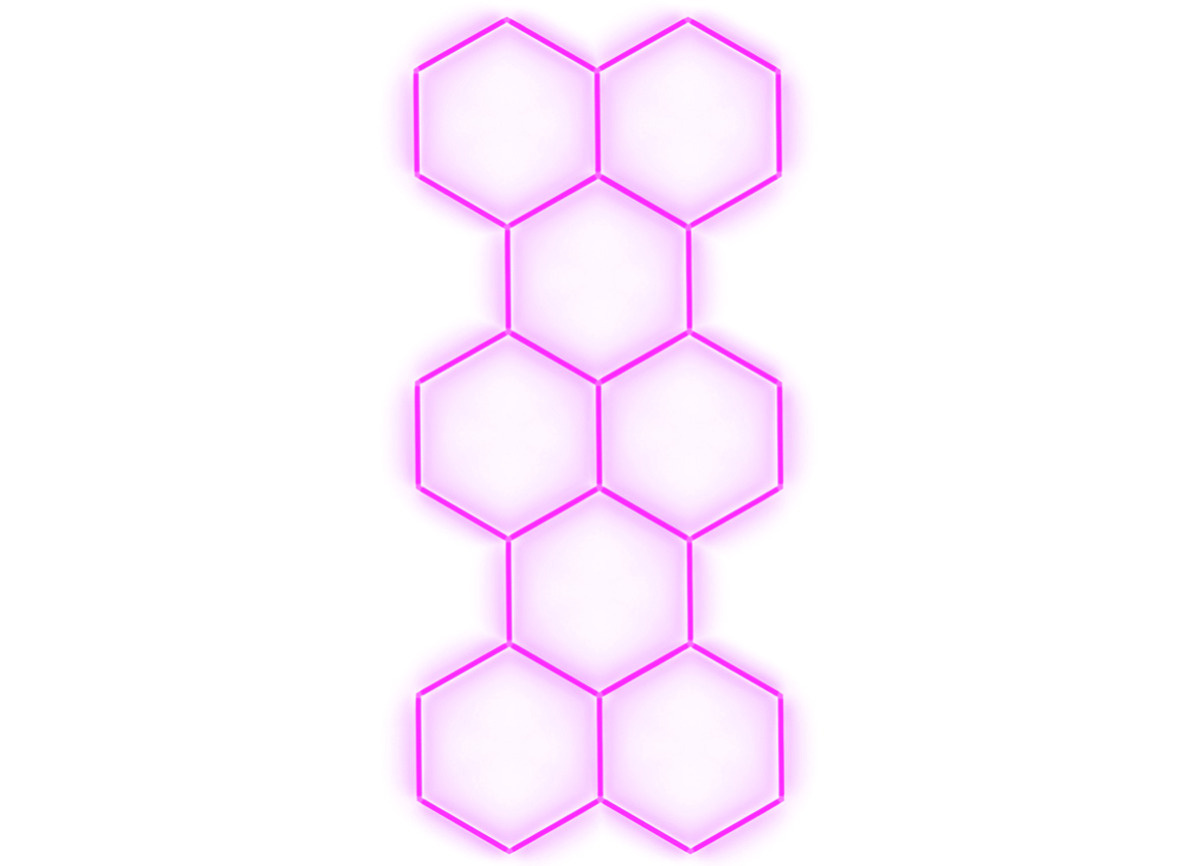 Kompletní LED hexagonové svítidlo růžové, rozměr: 8 elementů 166 x 386 cm