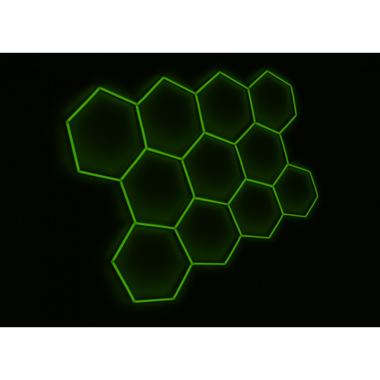 Kompletní LED hexagonové svítidlo zelené, rozměr: 11 elementů 336 x 238 cm