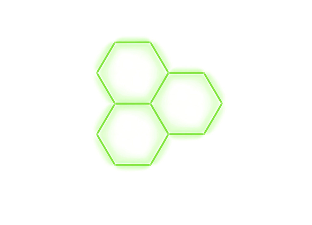 Kompletní LED hexagonové svítidlo zelené, rozměr: 3 elementy 168 x 166 cm