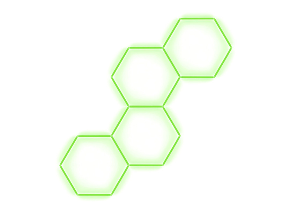 Kompletní LED hexagonové svítidlo zelené, rozměr: 4 elementy 166 x 288 cm