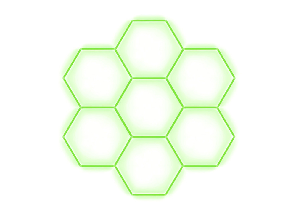 Kompletní LED hexagonové svítidlo zelené, rozměr: 7 elementů 238 x 252 cm