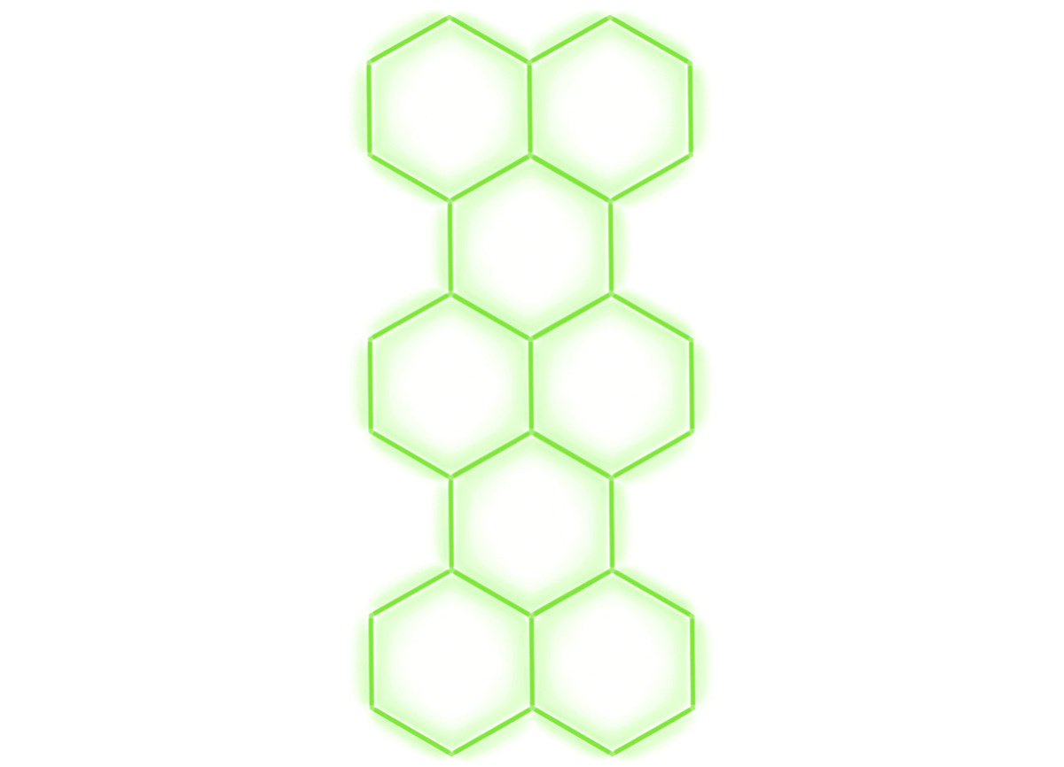 Kompletní LED hexagonové svítidlo zelené, rozměr: 8 elementů 166 x 386 cm