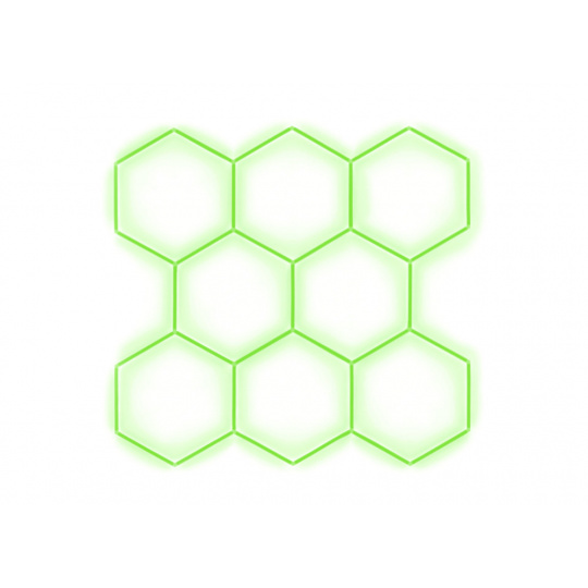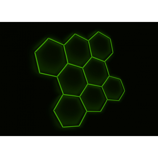 Kompletní LED hexagonové svítidlo zelené, rozměr: 8 elementů 252 x 238 cm