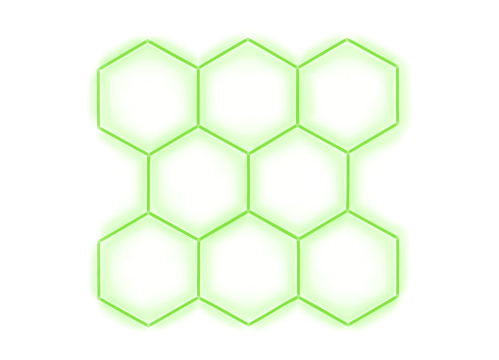Kompletní LED hexagonové svítidlo zelené, rozměr: 8 elementů 252 x 238 cm