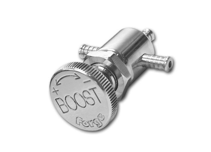 Manuální regulátor plnicího tlaku (boost controller) s jehlovým ovládáním Forge Motorsport. Je určen pro montáž do kabiny vozu, takže umožňuje pohodlné nastavení plnicího tlaku přímo z místa řidiče.