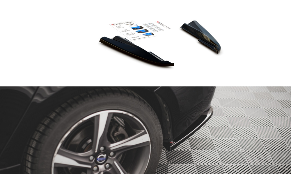 Maxton Design boční difuzory pod zadní nárazník pro Volvo S60 Mk2 Facelift, černý lesklý plast ABS, R-Design