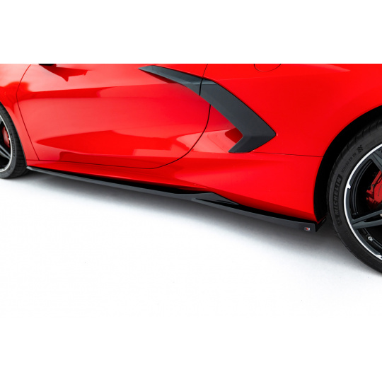 Maxton Design difuzory pod boční prahy pro Chevrolet Corvette C8, černý lesklý plast ABS