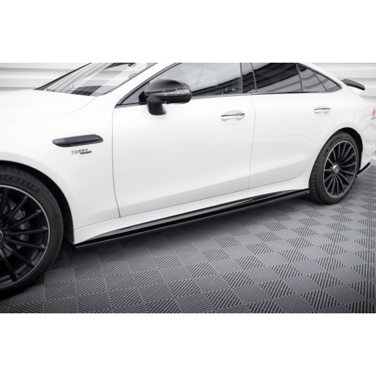 Maxton Design difuzory pod boční prahy pro Mercedes AMG GT 4 -Door Coupe GT 43 - V8 Styling Package, černý lesklý plast ABS