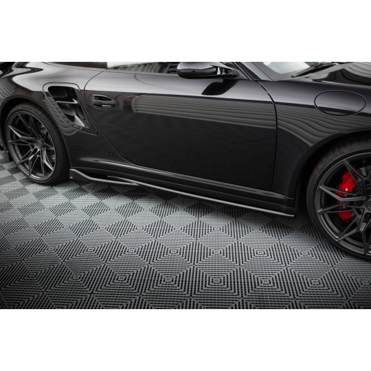 Maxton Design difuzory pod boční prahy pro Porsche 911 997 Turbo, černý lesklý plast ABS