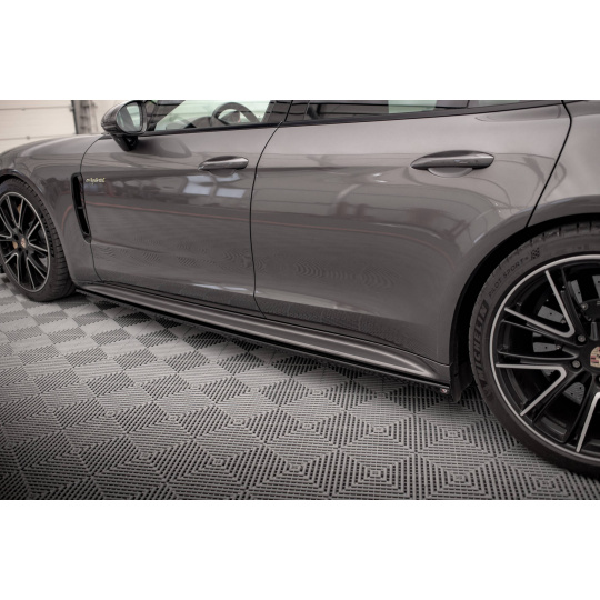 Maxton Design difuzory pod boční prahy pro Porsche Panamera 971 E-Hybrid, černý lesklý plast ABS