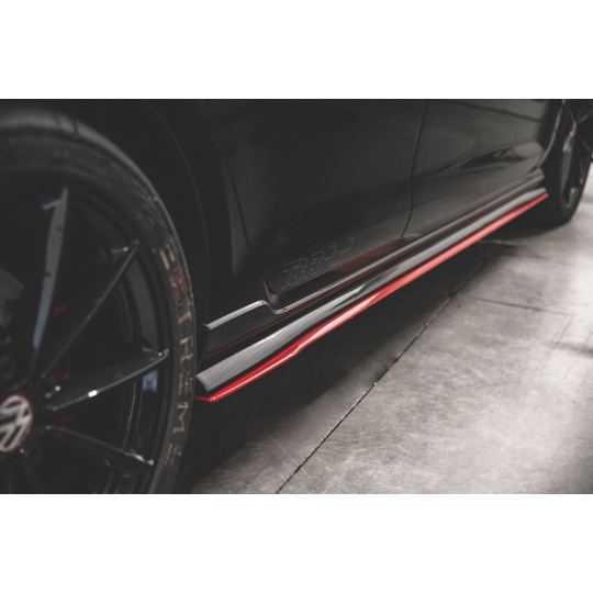 Maxton Design difuzory pod boční prahy pro Volkswagen Golf GTI TCR Mk7 Facelift, červený lesklý plast ABS
