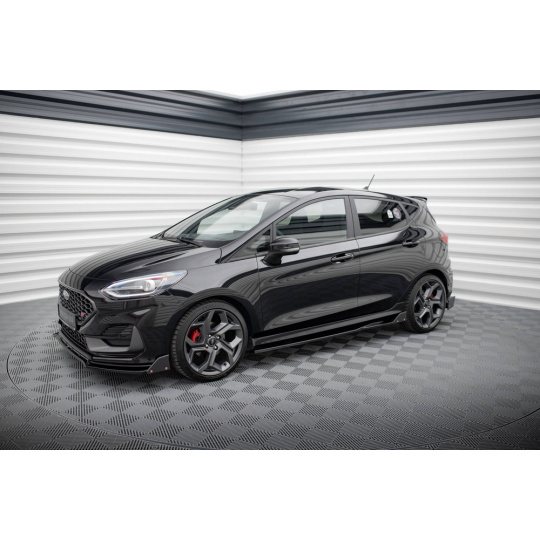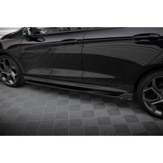 Maxton Design difuzory pod boční prahy s křidélky ver.2 pro Ford Fiesta ST-Line Mk8, černý lesklý plast ABS