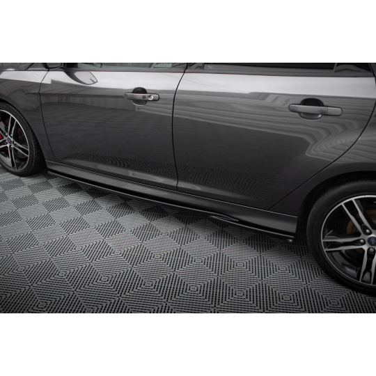 Maxton Design difuzory pod boční prahy ver.2 pro Ford Focus ST Mk3 Facelift, černý lesklý plast ABS