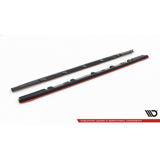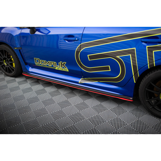 Maxton Design difuzory pod boční prahy ver.2 pro Subaru Impreza Mk4, černý lesklý plast ABS, s červenou linkou