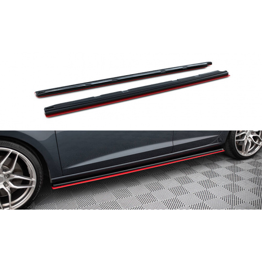Maxton Design difuzory pod boční prahy ver.3 pro Seat Leon Cupra Mk3 Facelift, černý lesklý plast ABS, s červenou linkou