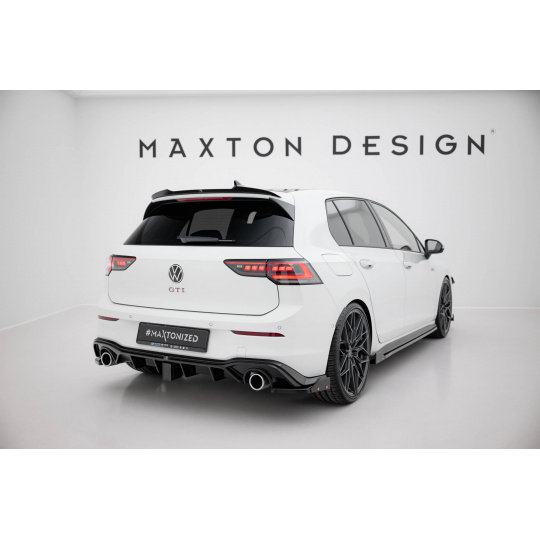 Maxton Design difuzory pod zadní nárazník s křidélky ver.2 pro Volkswagen Golf GTI Mk8, černý lesklý plast ABS