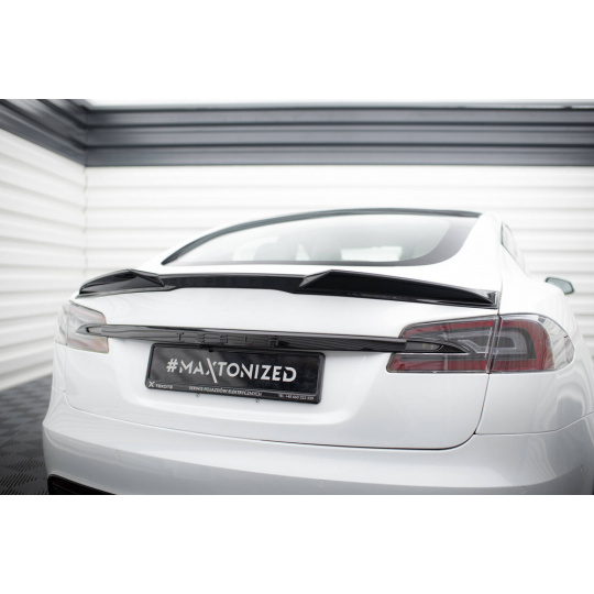 Maxton Design prodloužení spoileru 3d pro Tesla Model S Plaid Mk1 Facelift, černý lesklý plast ABS