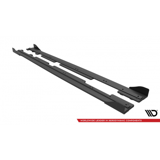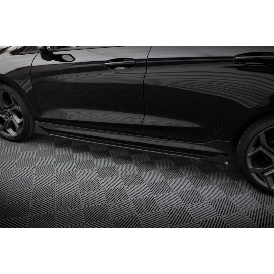Maxton Design "Racing durability" difuzory pod boční prahy s křidélky pro Ford Fiesta, Fiesta ST Mk8, plast ABS bez povrchové úpravy, s červenou linkou